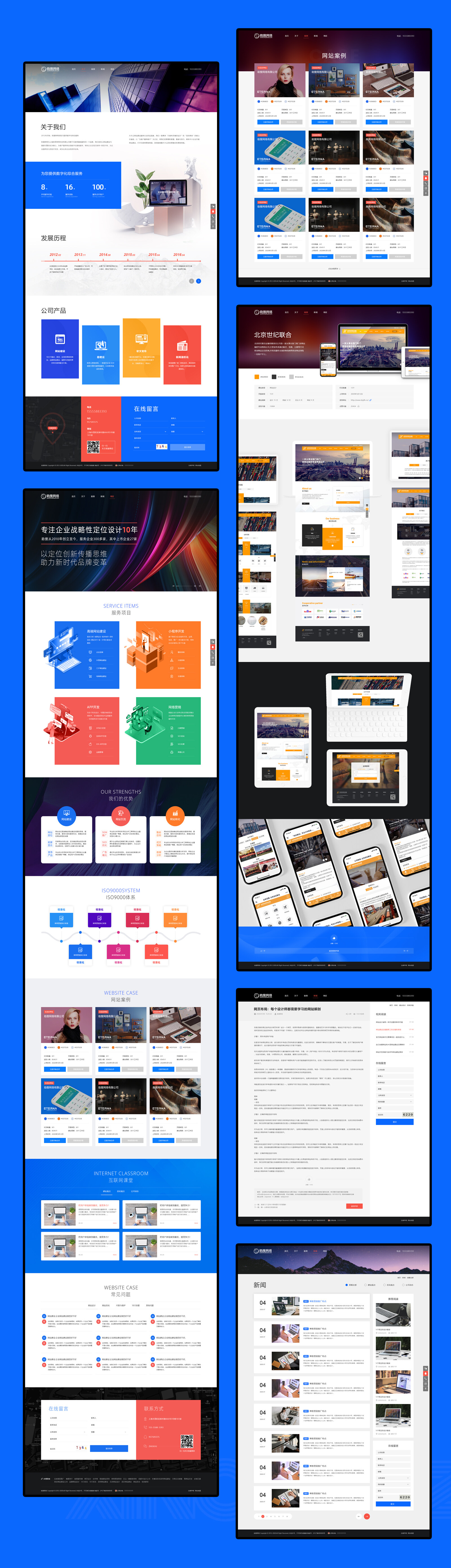 網(wǎng)站整體配色方面,在使用主藍(lán)色為主的情況下使用灰色為輔色,兩種顏色的搭配會(huì)產(chǎn)生強(qiáng)烈的對(duì)比感突出主體內(nèi)容的同時(shí),更強(qiáng)化高端與視覺(jué)聚焦的效果。