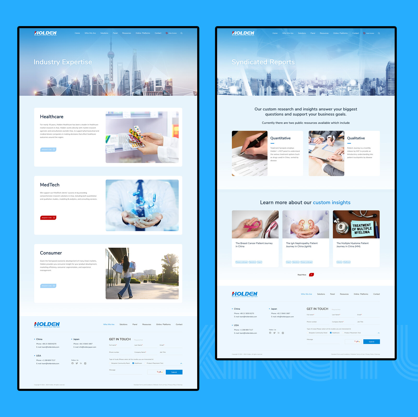網站整體配色方面,在使用主VI企業藍為主的情況下使用紅色為點綴色,兩種顏色的搭配會產生強烈的對比感突出主體內容的同時,更強化高端與視覺聚焦的效果