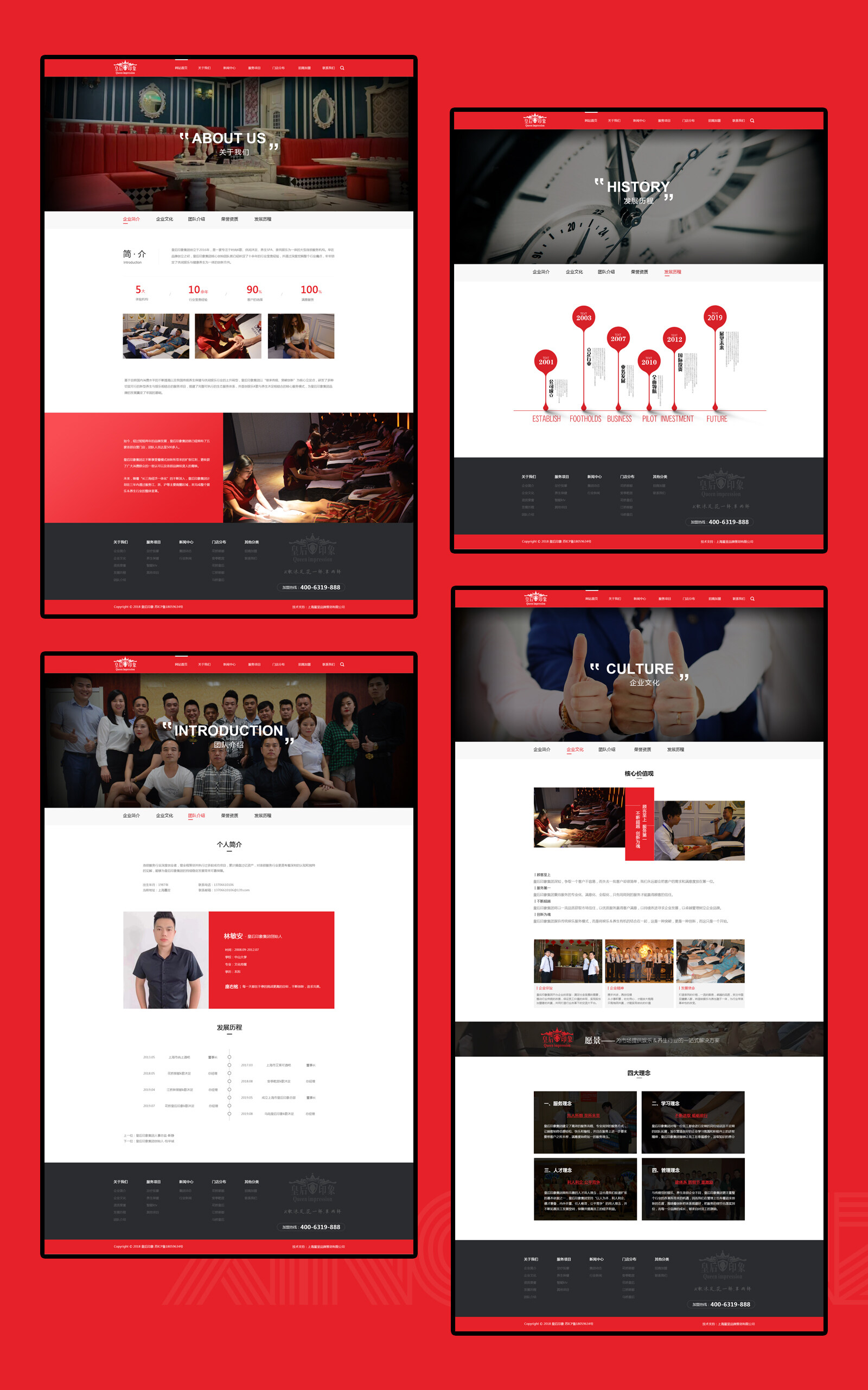 網(wǎng)站整體配色方面,在使用主VI紅色為主的情況下使用灰白色為背景,兩種顏色的搭配會(huì)產(chǎn)生強(qiáng)烈的對比感,突出主體內(nèi)容的同時(shí)更強(qiáng)化高端與視覺聚焦的效果。