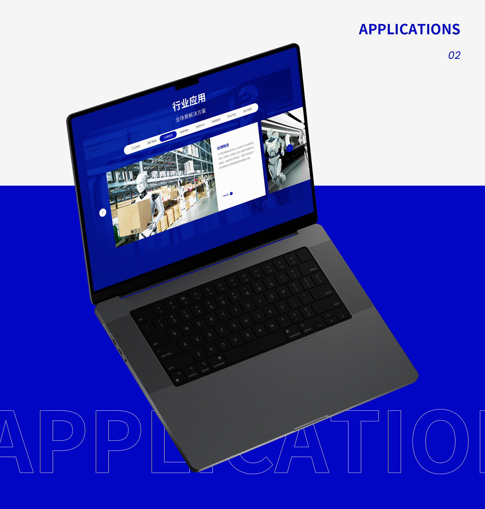 網站整體配色方面,在使用主VI科技藍為主的情況下使用灰白色為背景,兩種顏色的搭配會產生強烈的對比感突出主體內容的同時,更強化高端與視覺聚焦的效果。