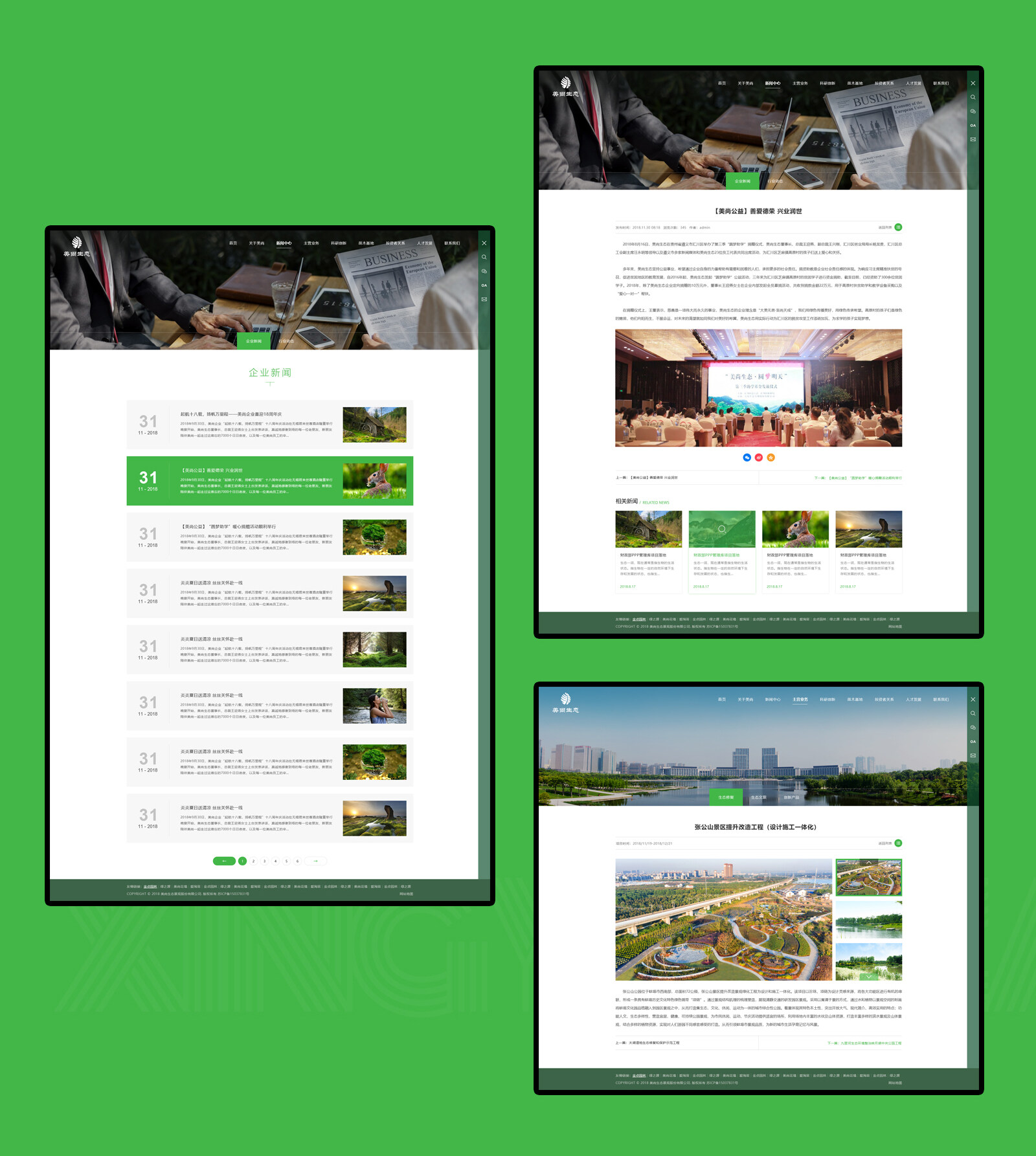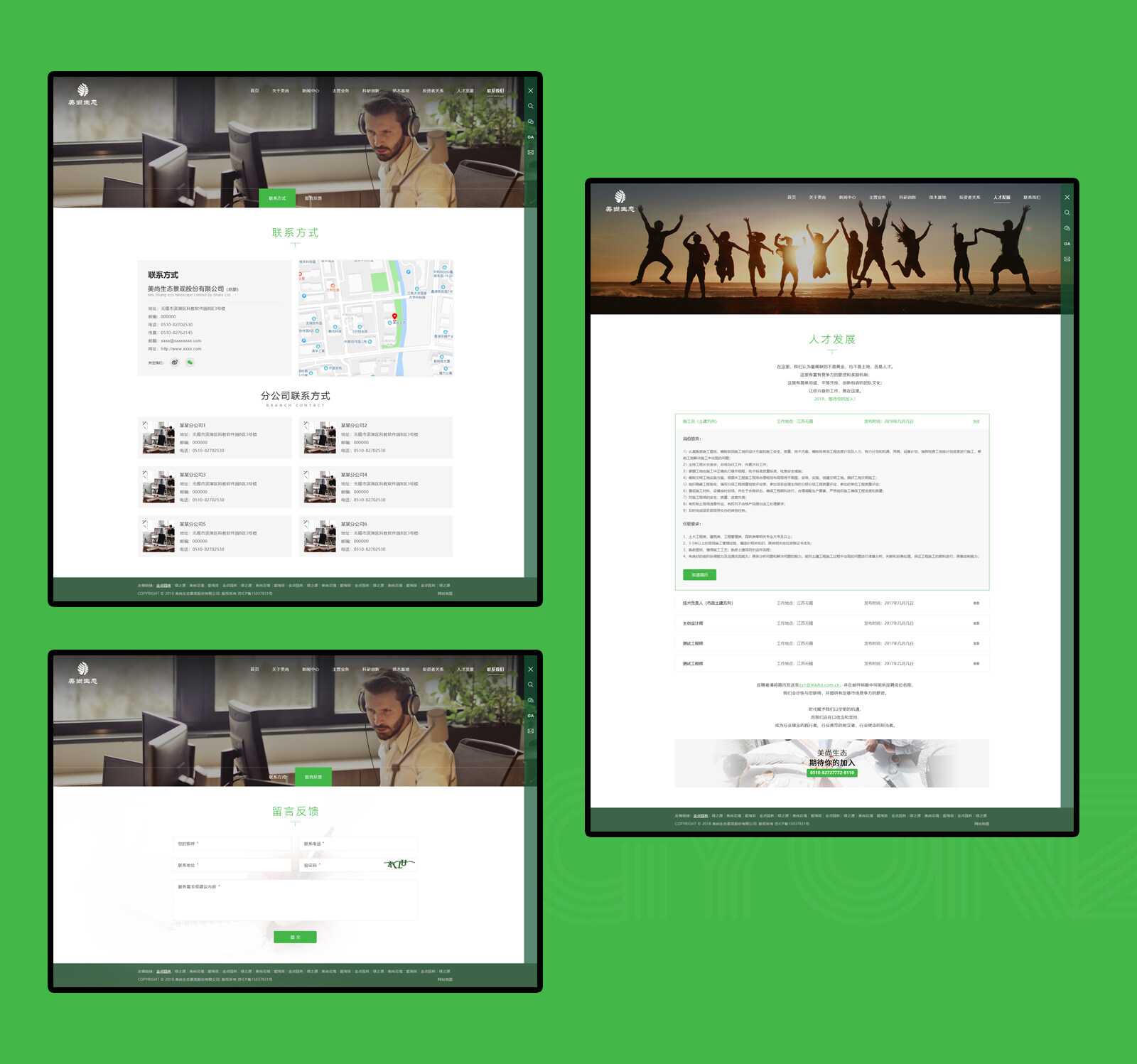 公司總部位于江蘇無錫,下轄二十八家分、子公司,擁有員工一千三百余人。主營業務涵蓋生態修復、生態景觀、生態旅游三大方向以及資源循環利用、農產品開發等領域。目前已形成集策劃、規劃、設計、研發、融資、建設、生產以及旅游運營為一體的完整產業鏈,能夠為客戶提供生態環境建設與運營的整體解決方案,并且具有極強的金融創新能力。公司在立足長三角的基礎上,不斷向全國各地特別是中西部地區拓展。同時,順應國家“一帶一路”戰略,積極開發東南亞市場,已完成了安徽、山東、北京、河北、湖南、四川、貴州、云南、老撾等省份及重要城市的業務布局,形成了市場化、多元化、國際化的業務生態圈。