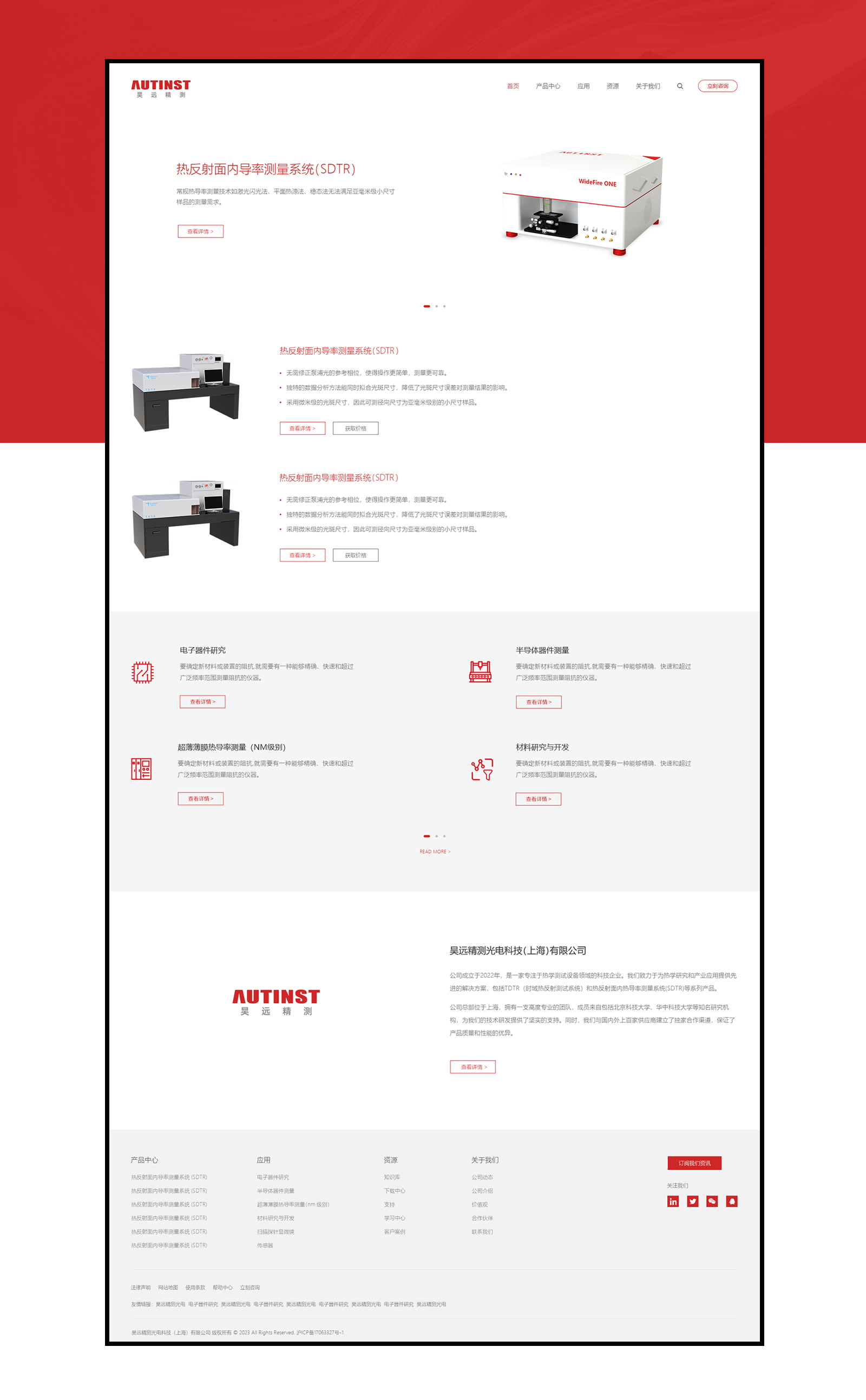 吳遠精測光電科技(上海)有限公司成立于2022年,是一家專注于熱學測試設備領域的科技企業。我們致力于為熱學研究和產業應用提供先進的解決方案,包括TDTR(時域熱反射測試系統)和熱反射面內熱導率測量系統(SDTR)等系列產品。