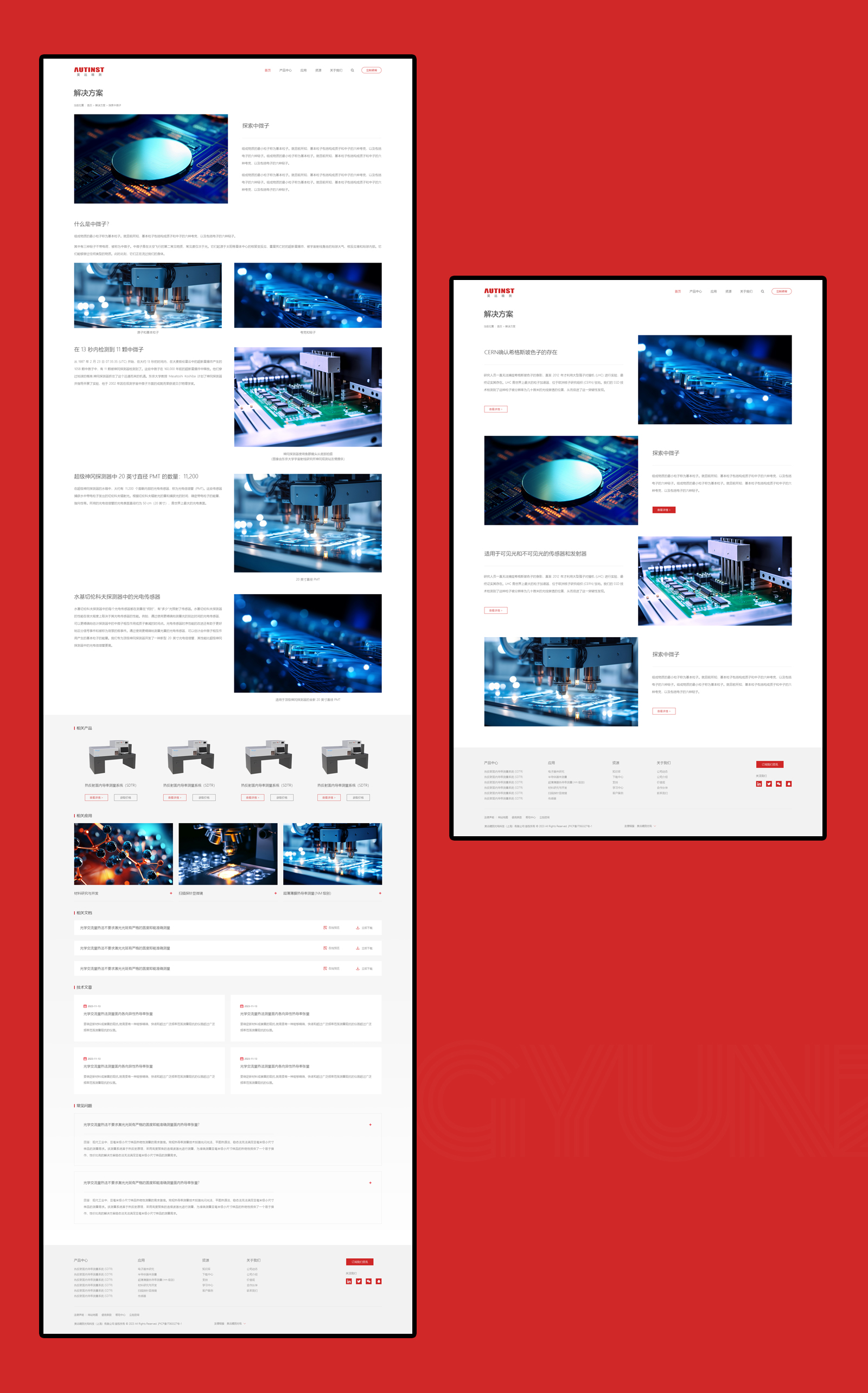 網站整體配色方面,在使用主紅色為主的情況下使用白色為輔色,兩種顏色的搭配會產生強烈的對比感突出主體內容的同時,更強化精密與視覺聚焦的效果。