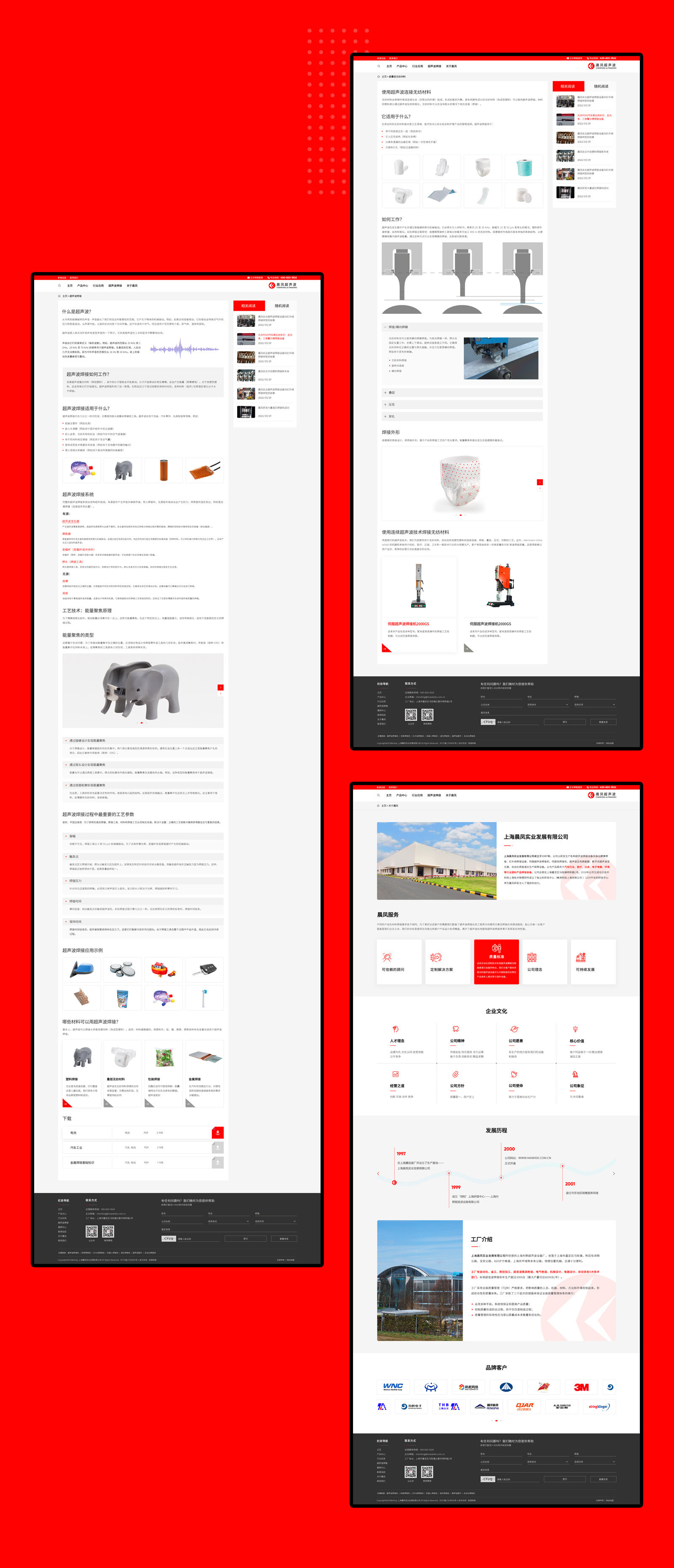 上海晨鳳實(shí)業(yè)發(fā)展有限公司成立于1997年,公司以研發(fā)生產(chǎn)各種超聲波焊接設(shè)備及振動摩擦焊接、紅外線焊接設(shè)備、伺服超聲波焊接機(jī)、伺服熱焊接機(jī)、超聲波壓電換能器、數(shù)字式超聲波發(fā)生器、自動化焊接濾芯生產(chǎn)線等設(shè)備。公司產(chǎn)品是用于汽車行業(yè)、醫(yī)療、過濾、電子電器、環(huán)保等行業(yè)塑料產(chǎn)品焊接裝備。公司總部在上海嘉定區(qū)馬陸鎮(zhèn)明和路2號。2018年公司又成功引進(jìn)中科院上海技術(shù)物理研所成立了獨(dú)立的研發(fā)中心(峰湃科技上海有限公司 )1200平米的研發(fā)中心將為晨鳳研發(fā)注入了強(qiáng)勁的動力。