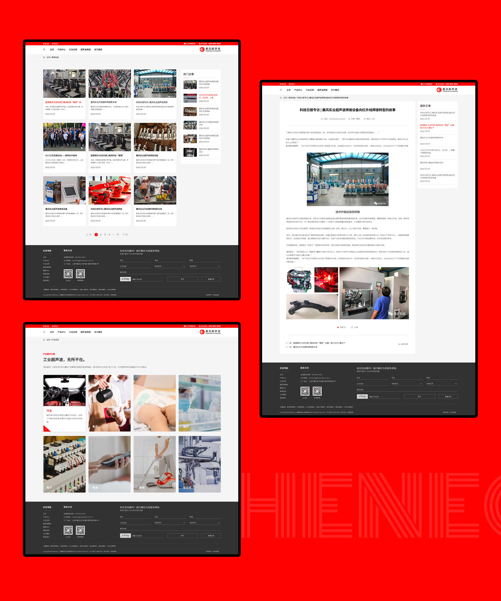 網(wǎng)站整體配色方面,以主VI紅色為主的情況下使用灰色和白色為背景,多種顏色的搭配會產(chǎn)生強(qiáng)烈的對比感突出主體內(nèi)容的同時,更強(qiáng)化高端與視覺聚焦的效果。