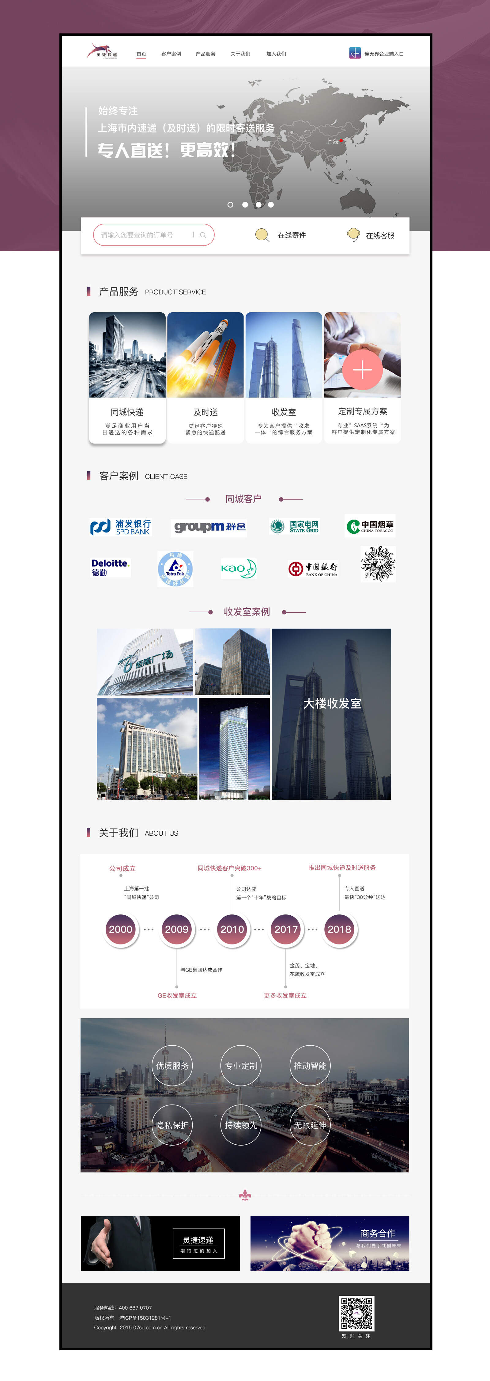 上海靈捷速遞服務(wù)有限公司成立于 2000 年,有著悠久的品牌歷史。是一家基于同城快遞、及時(shí)送收發(fā)室業(yè)務(wù)的綜合服務(wù)商。我們根據(jù)客戶不同的需求,為客戶量身打造同城、全國(guó)、國(guó)際,包含物流,倉儲(chǔ)等等一系列的快遞服務(wù)方案。讓客戶擁有一個(gè)屬于自己的智能快遞管家我們秉承著以“用心服務(wù),以成為客戶的長(zhǎng)遠(yuǎn)互利的好伙伴”的服務(wù)理念,多年來,我們不斷優(yōu)化升級(jí)公司的產(chǎn)品與服務(wù),緊跟互聯(lián)網(wǎng)智能時(shí)代的步伐,研發(fā)了高效、可控、便捷、數(shù)據(jù)化的 SAAS 智能平臺(tái),客戶無需安裝 APP 和電腦軟件就可以通過微信和和電腦進(jìn)行發(fā)件查件,無需手寫紙質(zhì)面單,所有寄件和收件進(jìn)系統(tǒng),隨時(shí)可查,企業(yè)管理人員可在線一鍵對(duì)賬。全方位解決企業(yè)的困擾。